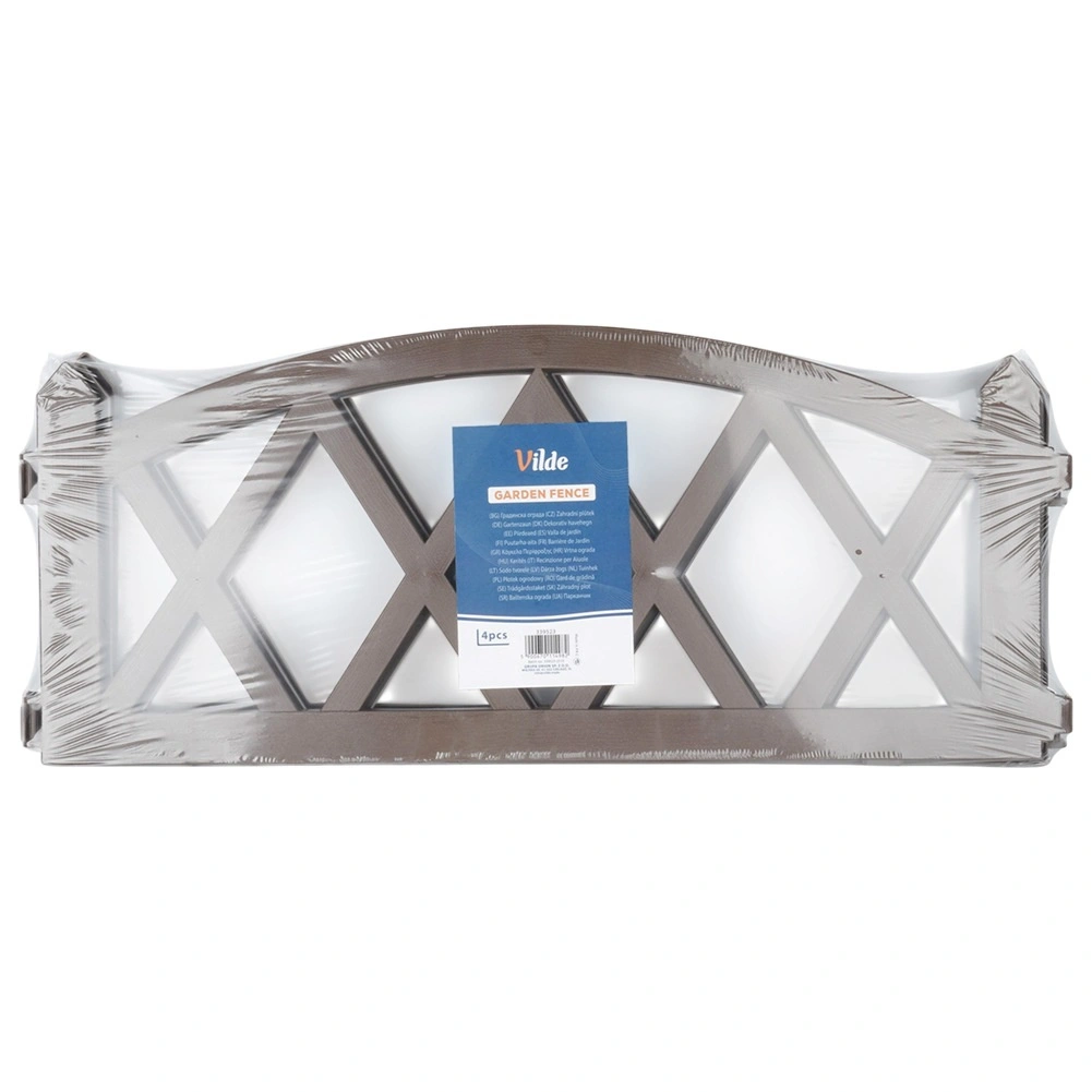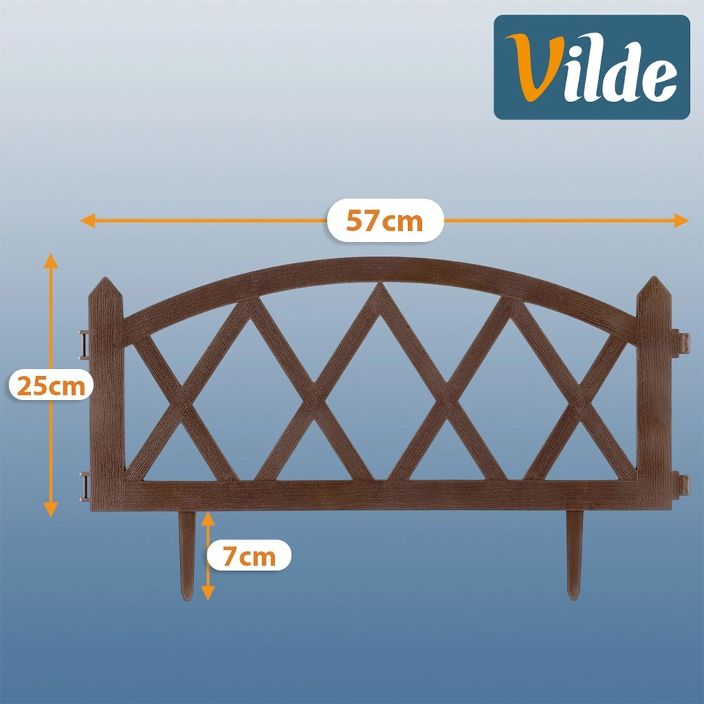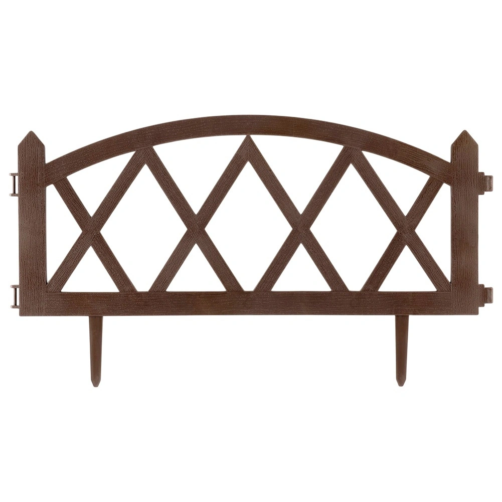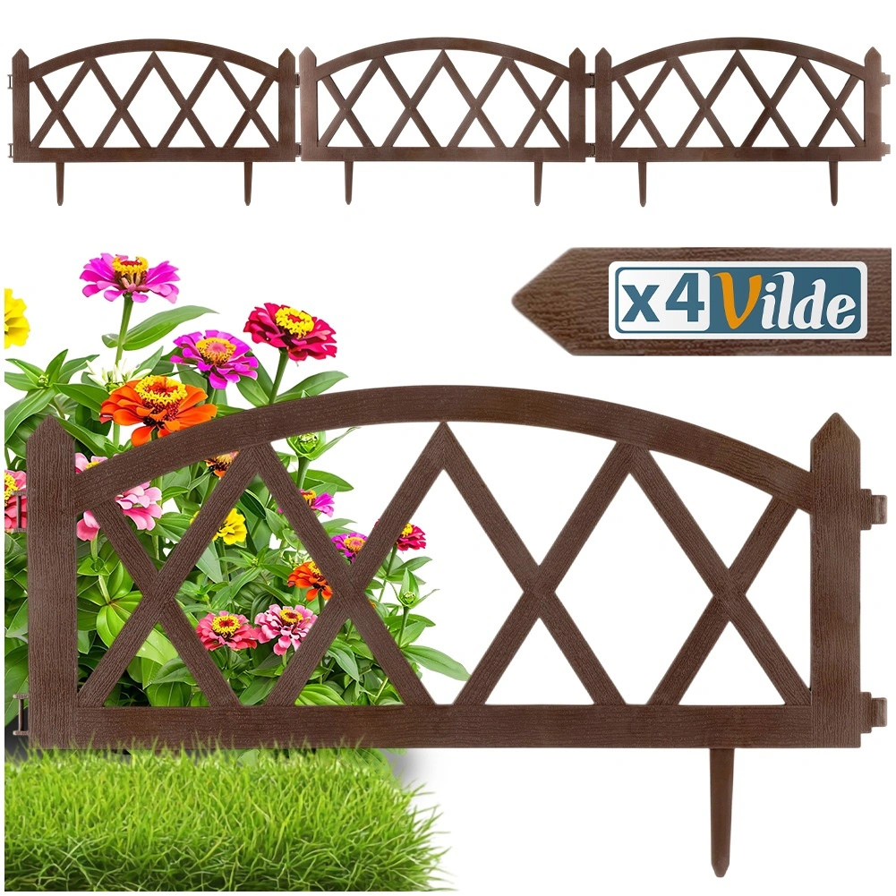 Praktický zahradní plůtek v hnědé barvě pro elegantní oddělení záhonů, trávníků a cestiček. Sada 4 panelů 57 × 25 cm s pevnými zemními kolíky umožňuje snadnou instalaci, modulární spojování do libovolné délky (až 228 cm v přímce) a odolnost vůči mrazu, UV i dešti.