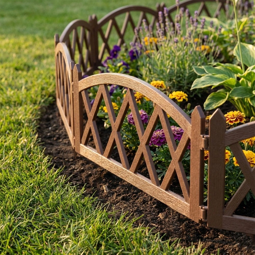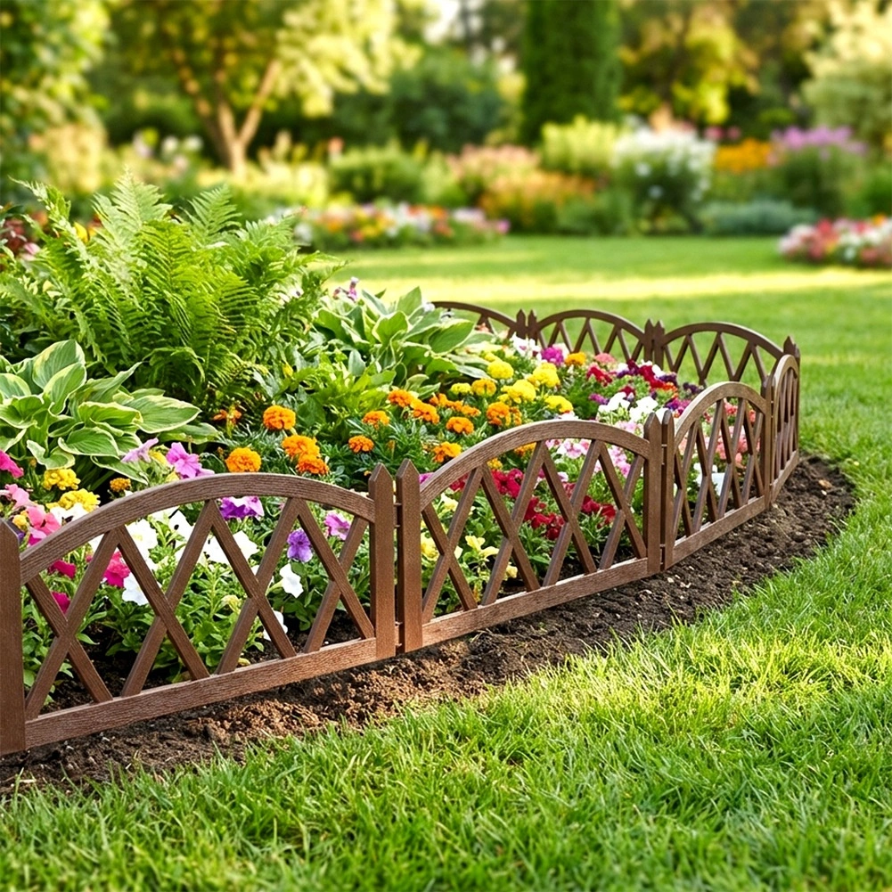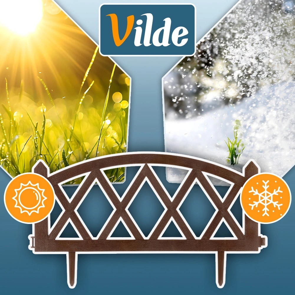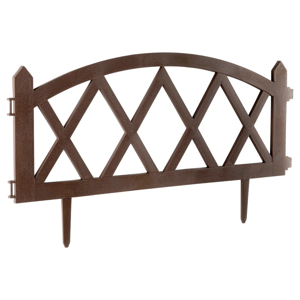 Praktický zahradní plůtek v hnědé barvě pro elegantní oddělení záhonů, trávníků a cestiček. Sada 4 panelů 57 × 25 cm s pevnými zemními kolíky umožňuje snadnou instalaci, modulární spojování do libovolné délky (až 228 cm v přímce) a odolnost vůči mrazu, UV i dešti.