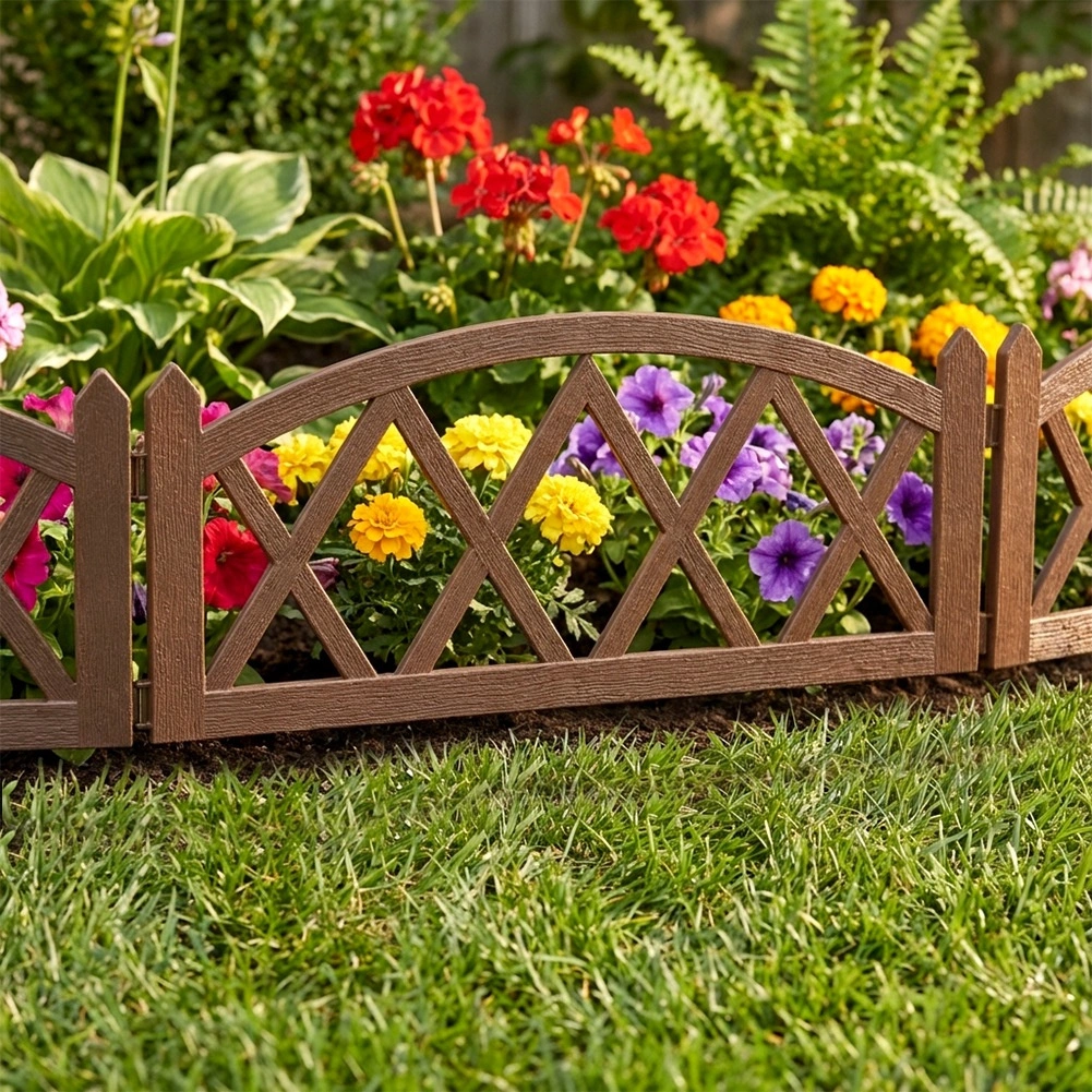 - Estetický vzhled – hnědý dřevodekor a mřížkový design pro upravený vzhled zahrady.
