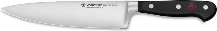 Univerzální kuchařský nůž Wüsthof Classic s délkou čepele 20 cm je spolehlivý pomocník pro každodenní vaření. Nabízí tenkou a přesnou čepel z oceli X50CrMoV15, plnou integrální konstrukci (full tang) a ergonomickou rukojeť se třemi nýty pro stabilní úchop. Ideální pro sekání bylinek, krájení masa, ryb, zeleniny i ovoce – pro profesionály i domácí kuchaře.