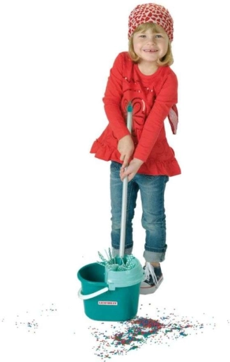 Děti si vyzkouší „mopování“ jako dospělí – kbelík má integrovaný ždímač, mop je lehký a dobře se drží. Ideální pro hraní na úklid a rozvoj koordinace.