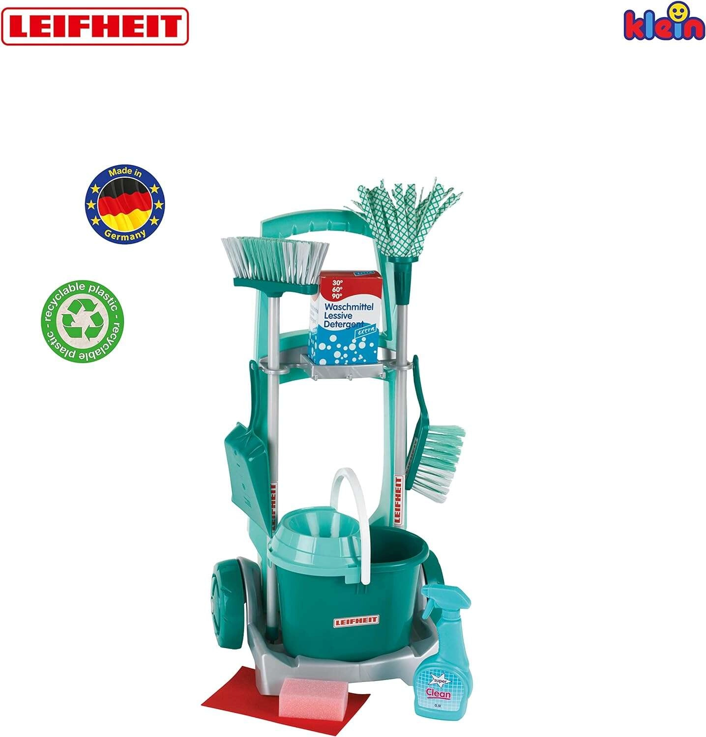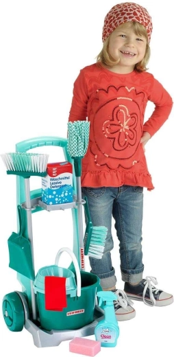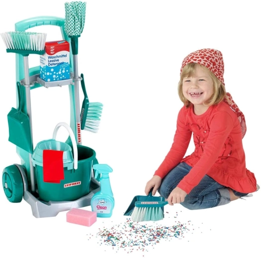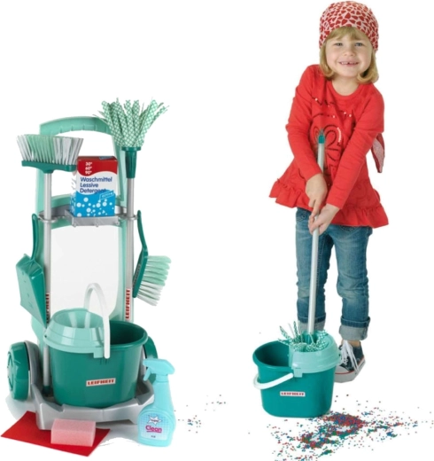 Stylový dětský úklidový vozík na licencí LEIFHEIT od značky KLEIN přináší realistickou hru na domácnost. Set obsahuje vozík na kolečkách, kbelík s ždímačem, mop, koště, smetáček s lopatkou a další doplňky pro napodobování skutečného úklidu. Díky lehkým materiálům a promyšleným držákům je vše snadno ovladatelné a připravené k hraní. Skvělé pro rozvoj motoriky, učení odpovědnosti a kreativní role-play od 3 let.