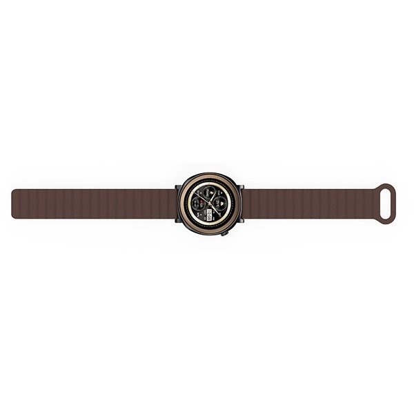 Odolná konstrukce s krytím IP68 zvládne déšť, trénink i plavání v bazénu. Pohodlný silikonový řemínek v hnědé barvě podtrhne váš styl – ať už volíte klasický vzhled, nebo sportovní outfit.