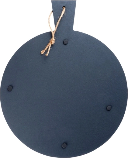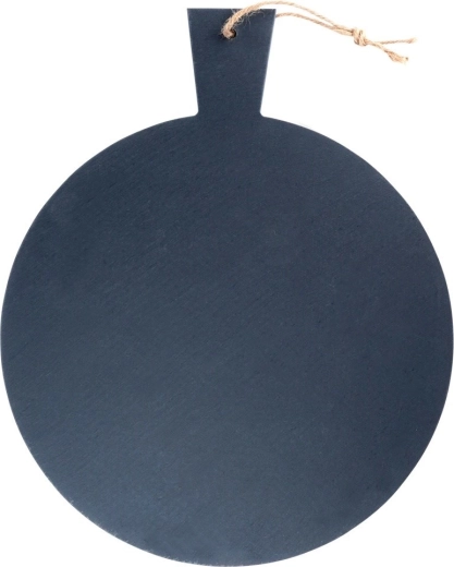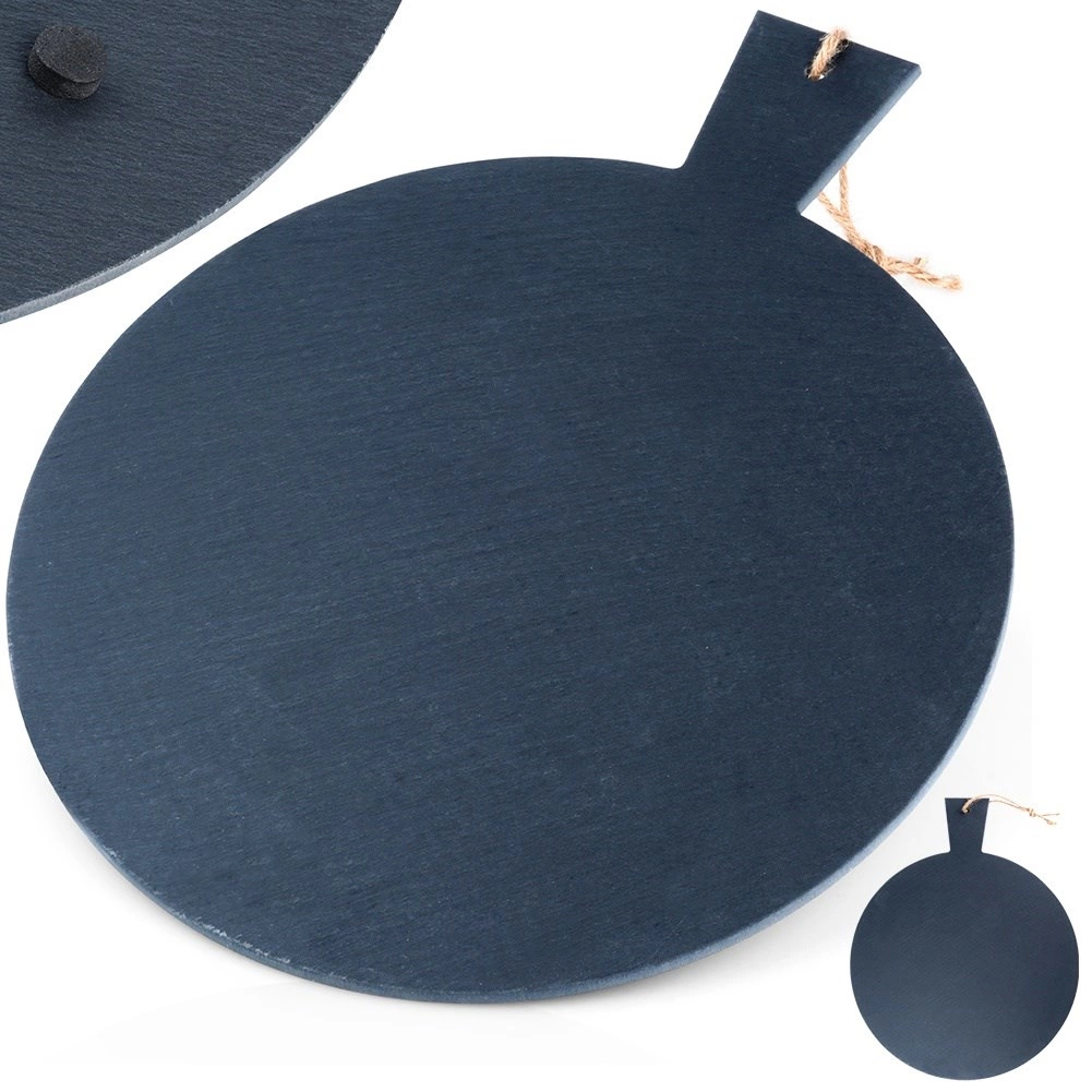 Elegantní servírovací prkénko z přírodní břidlice s praktickou rukojetí a poutkem na zavěšení. Odolný kamenný povrch je ideální pro sýry, uzeniny, dezerty i předkrmy, skvěle drží teplotu a díky protiskluzovým podložkám zůstává stabilní na stole.