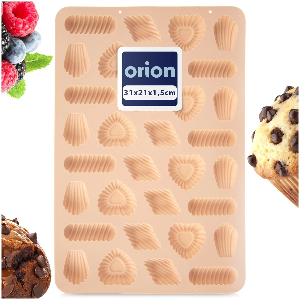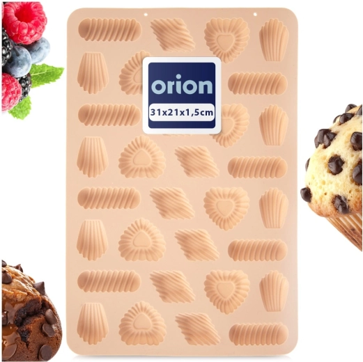 Praktická silikonová forma pro pečení až 32 kusů křehkých sušenek, čokoládek či pralinek ve 4 dekorativních tvarech. Vyrobena z kvalitního, pružného silikonu v béžové barvě, s nepřilnavým povrchem pro snadné vyjmutí bez mazání. Tepelná odolnost -40 °C až +220 °C, vhodná do trouby, mikrovlnky i mrazáku, a lze mýt v myčce. Originální produkt značky ORION.