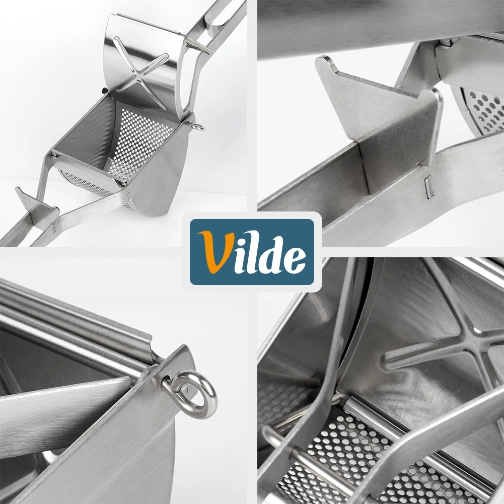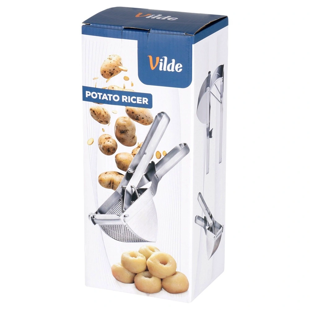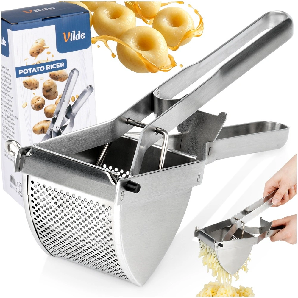 Praktická nerezová lisovací příslušenství na brambory od značky VILDE vám pomůže připravit jemné pyré, těsto na bramborové noky a knedlíky i dětské příkrmy. Díky pevné konstrukci z nerezové oceli a dlouhým pákovým rukojetím snadno protlačíte uvařené brambory i měkkou zeleninu bez námahy. Rozměry 11,5 × 30 cm, snadná údržba a dlouhá životnost.