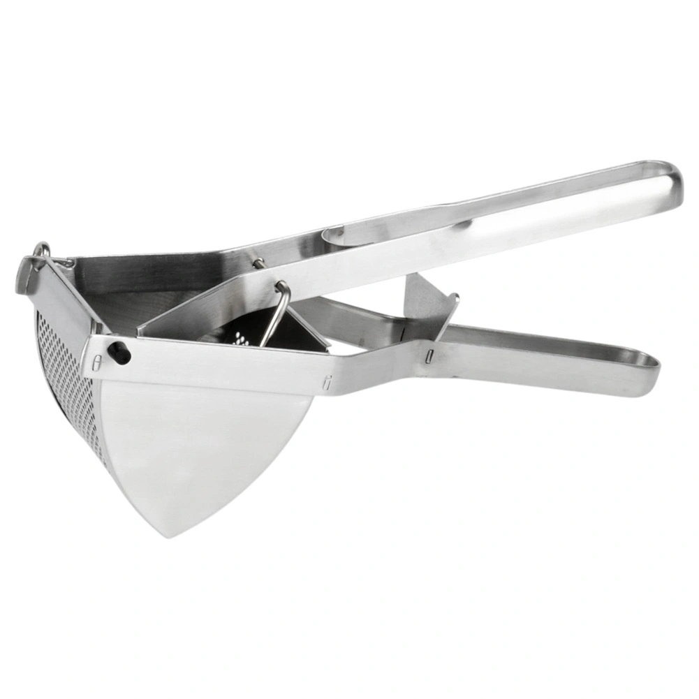 Nerezový lis na brambory je nepostradatelný pomocník pro hladké bramborové pyré, kopyta, šišky, pyzy či knedlíky. Díky jemně děrovanému košíku lis rovnoměrně protlačí uvařené suroviny a zajistí lehkou, vzdušnou strukturu bez hrudek.