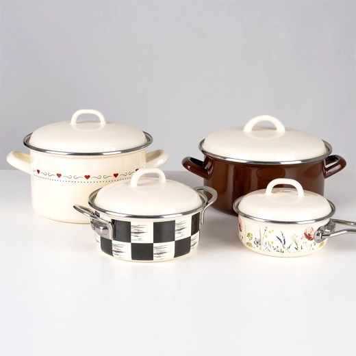 Poznámka: Smaltované nádobí může mít drobné výrobní nerovnosti (např. nepatrné výstupky či odchylky potisku), které nemají vliv na funkčnost ani kvalitu a podtrhují tradiční způsob výroby.