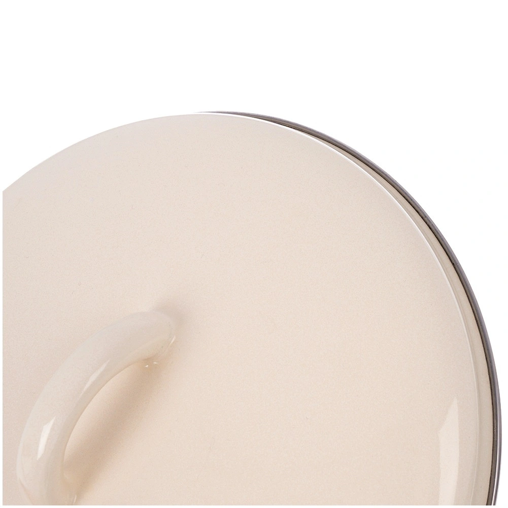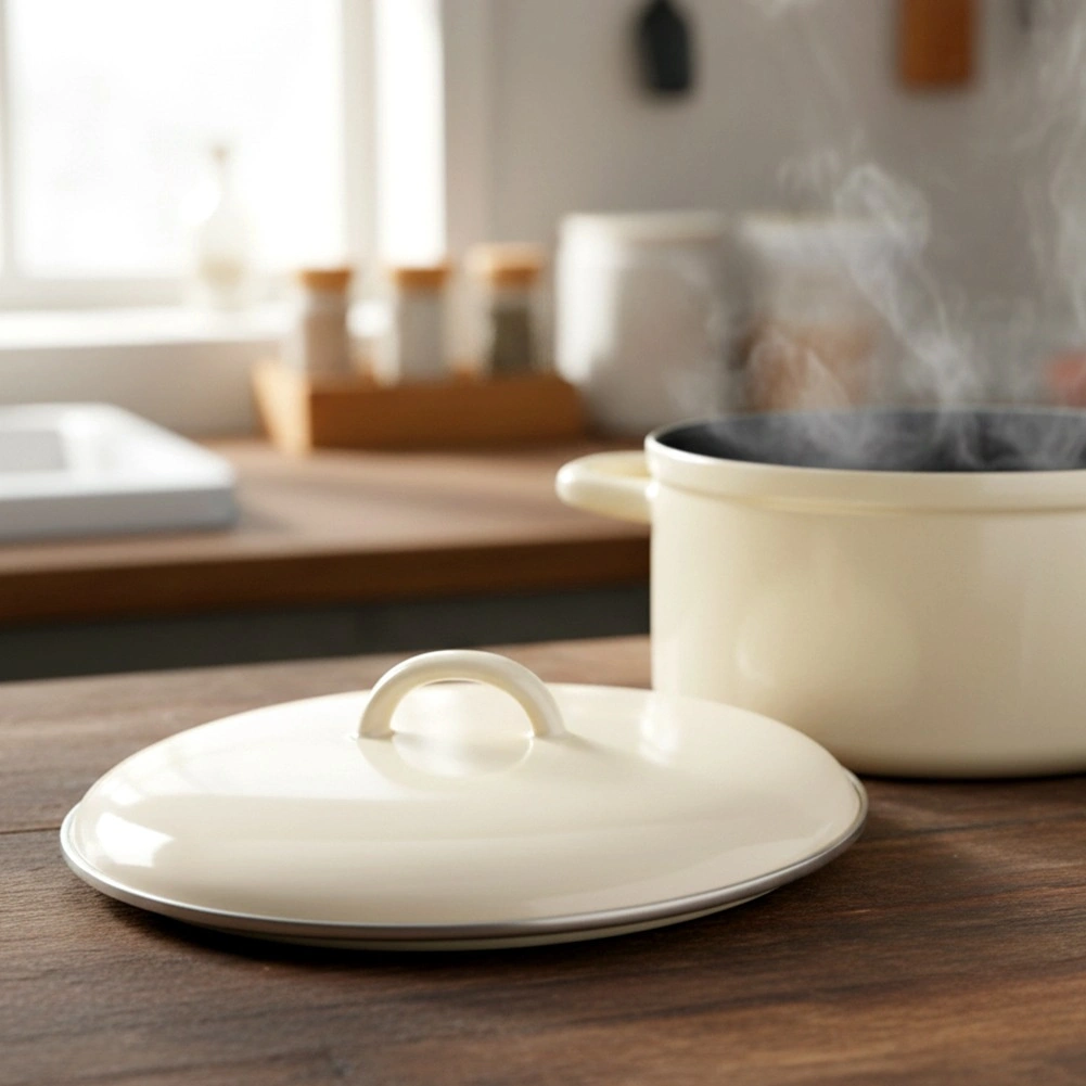 Praktická krémová poklice ze smaltované oceli je ideálním doplňkem ke kuchyňskému nádobí, které nemá víko v sadě. Díky pevnému úchytu a kovové obrubě skvěle těsní, drží páru uvnitř a pomáhá dosáhnout šťavnatějších výsledků při vaření i dušení. Minimalistický vzhled se snadno kombinuje s jakýmkoli nádobím.