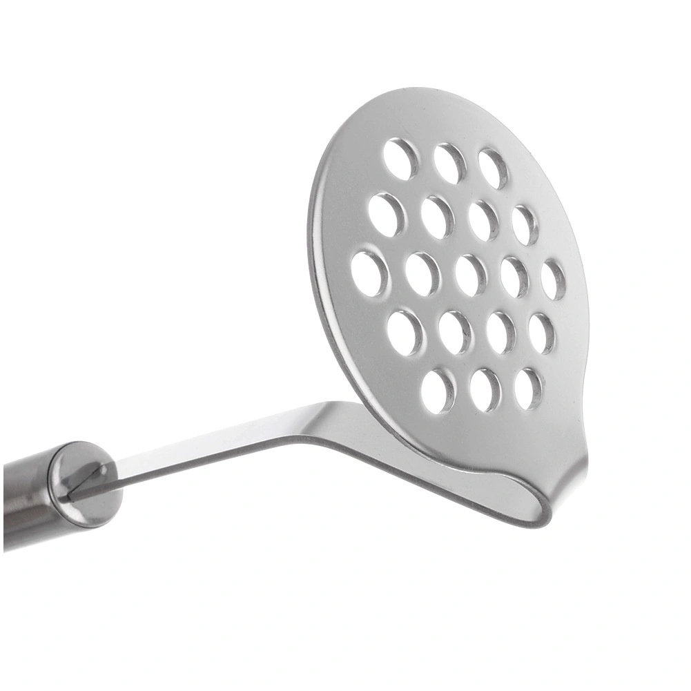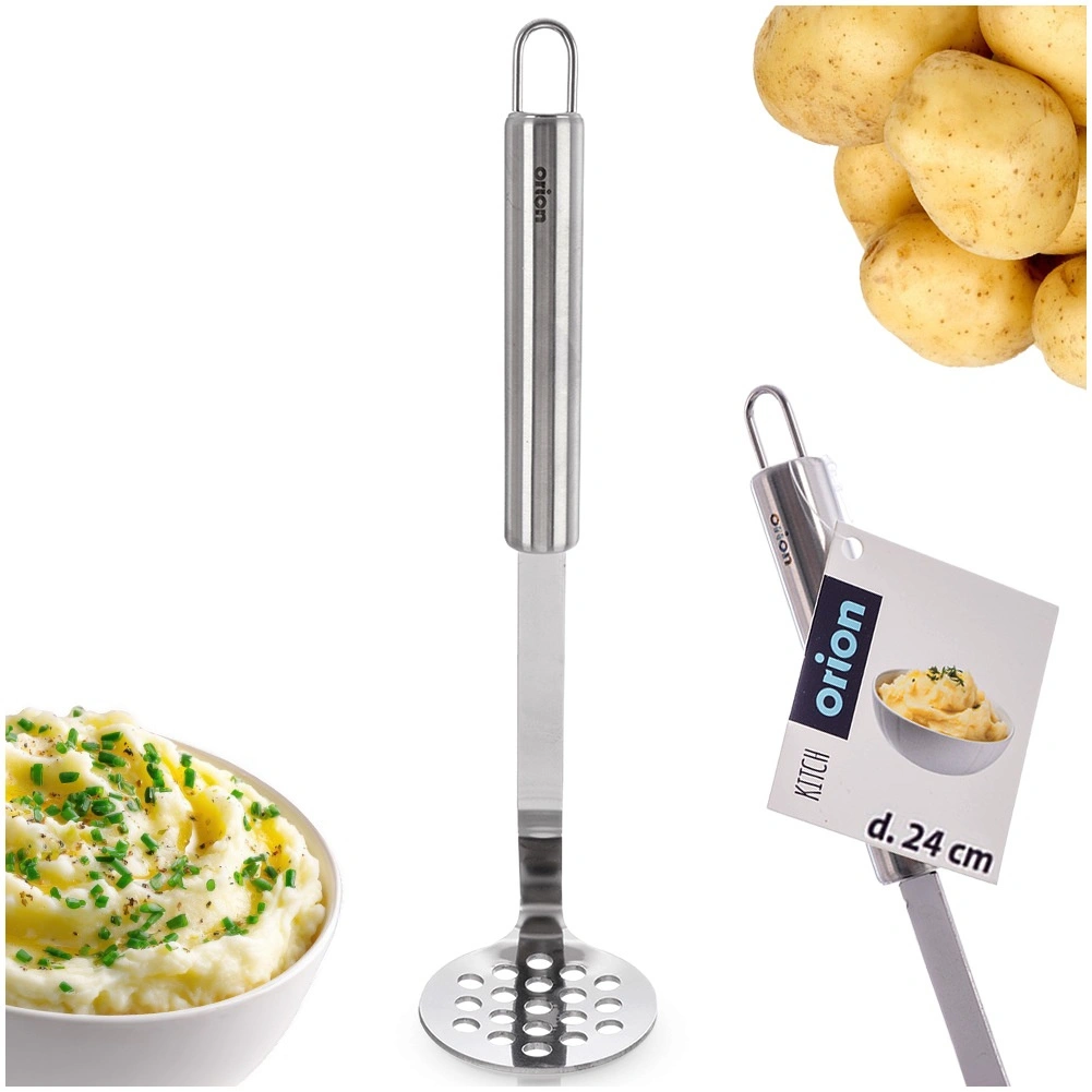 Perforovaná kulatá plocha o rozměrech 6 × 6 cm s velkými otvory efektivně rozmačká vařené suroviny do hladké konzistence. Délka 24 cm umožňuje pohodlnou práci přímo v hrnci či míse. Praktické očko na zavěšení šetří místo a udrží nástroj vždy po ruce.