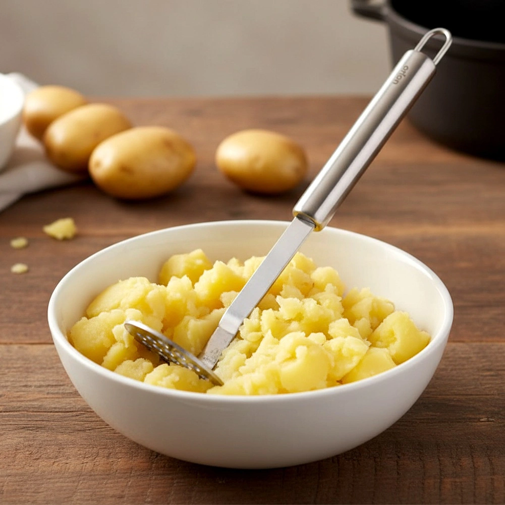 Užijte si snadné a rychlé přípravy domácího bramborového pyré, zeleninových kaší či ovocných musů. Toto šťouchadlo z kvalitní nerezové oceli nabízí skvělou odolnost, dlouhou životnost a hygienickou údržbu. Ergonomická rukojeť příjemně padne do ruky a poskytne jistý úchop při míchání i tlačení.
