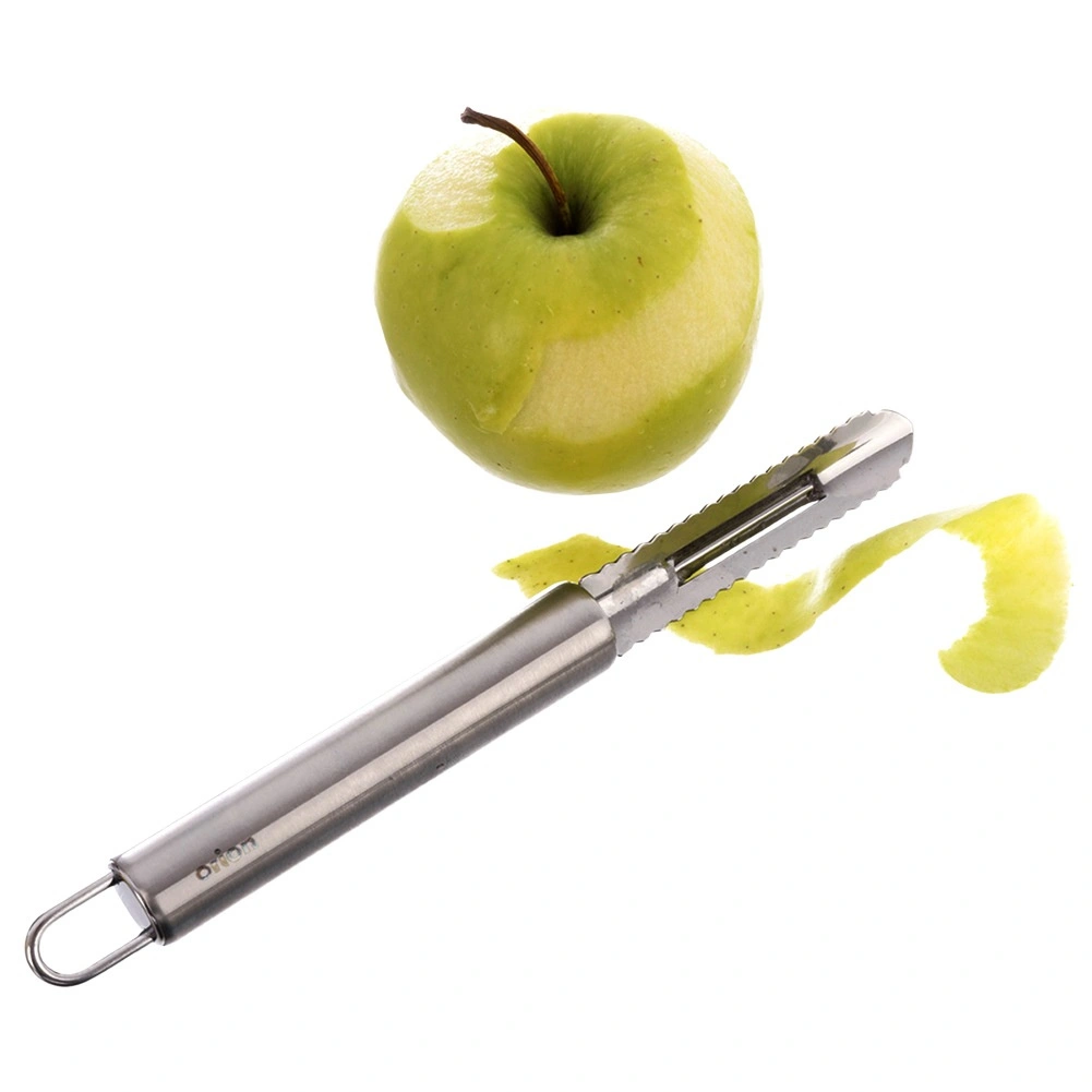 - Efektivní loupání – ostré 7,5cm ostří rychle zvládá ovoce i zeleninu.