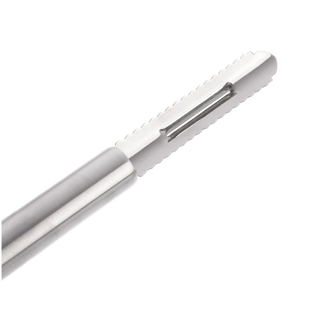 Vertikální škrabka ze série Kitch je navržena pro rychlé a pohodlné loupání brambor, mrkve, okurek či jablek. Nerezové provedení zajišťuje dlouhou životnost a snadné čištění, zatímco vroubkované výkyvné ostří jemně odebírá tenké slupky bez zbytečných ztrát.