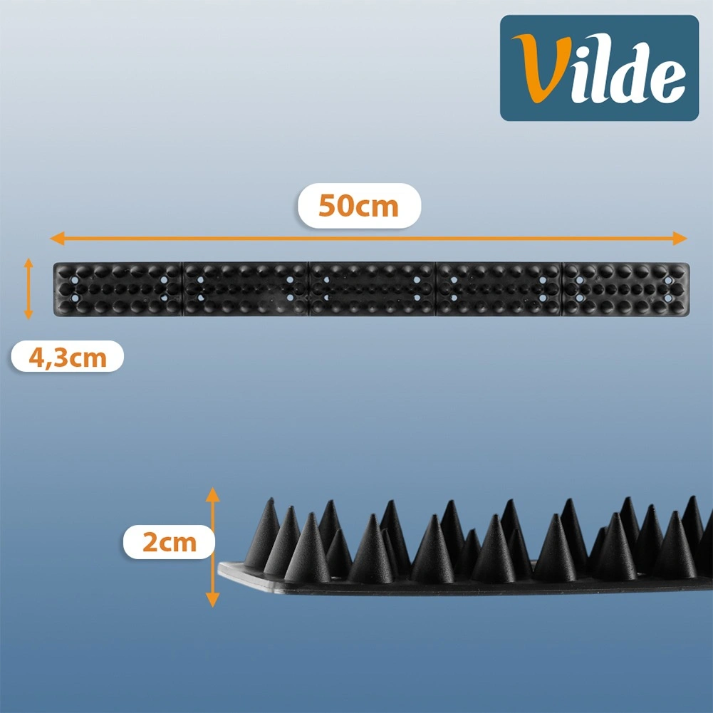 Každá 50cm lišta má přibližně 115 hrotů, které vytvářejí souvislou bariéru proti dosedání ptáků a přelézání koček.