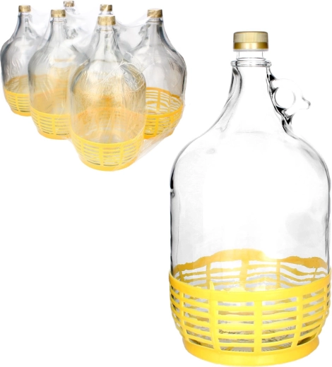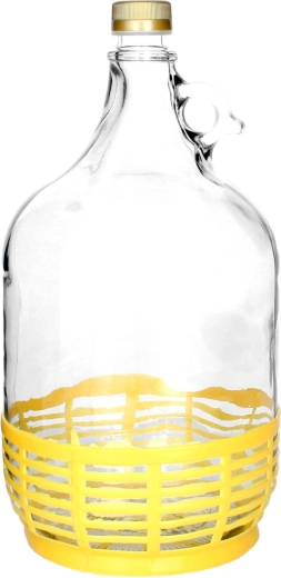Skleněný demižon 5 l s uchem a plastovým košíkem