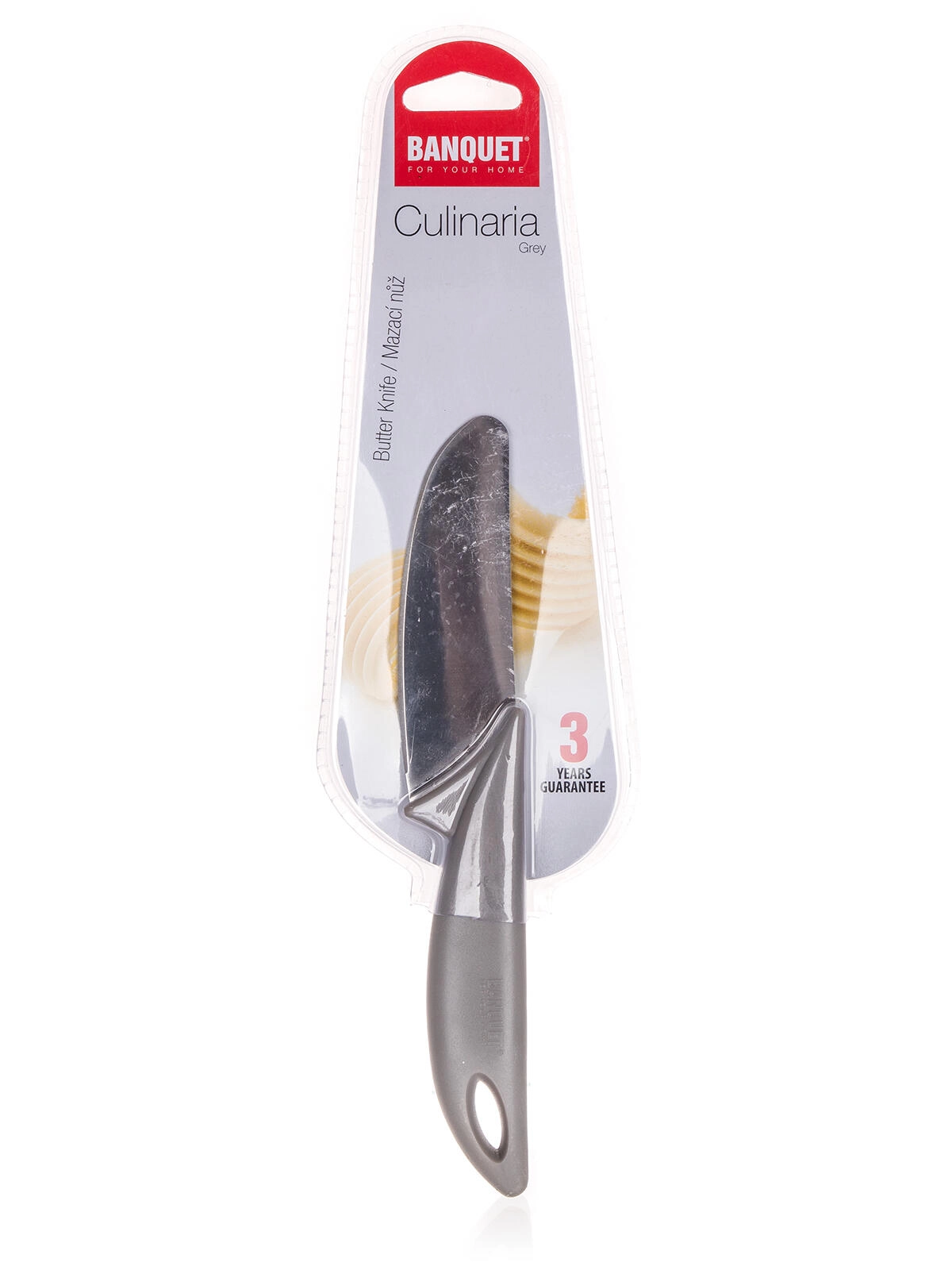 Mazací nůž Culinaria Grey kombinuje odolné ocelové ostří s ergonomickou plastovou rukojetí pro pohodlnou manipulaci. Díky šířce ostří 1,5 cm se skvěle hodí pro rovnoměrné roztírání másla, krémů, paštik a dalších pomazánek na pečivo.
