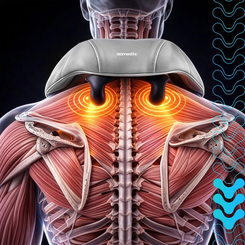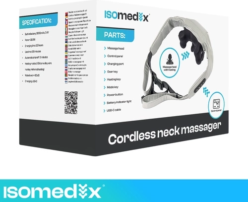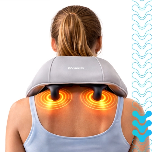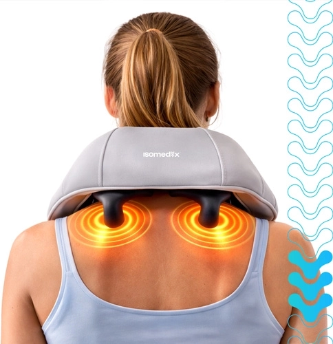 Ulevte si od napětí v krku, ramenou a zádech kdykoli a kdekoli s bezdrátovým masážním přístrojem ISOMEDIX. Kombinuje hloubkový shiatsu hnětací masáž, vyhřívání a pohodlné ovládání pro rychlou regeneraci a relax. Díky baterii až na 120 minut provozu a nabíjení USB‑C je ideální do domácnosti, kanceláře i na cesty.
