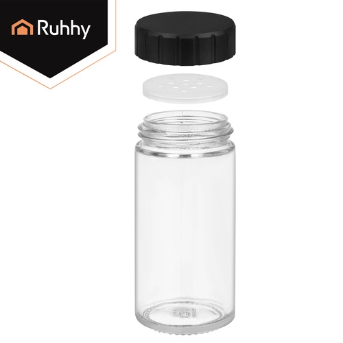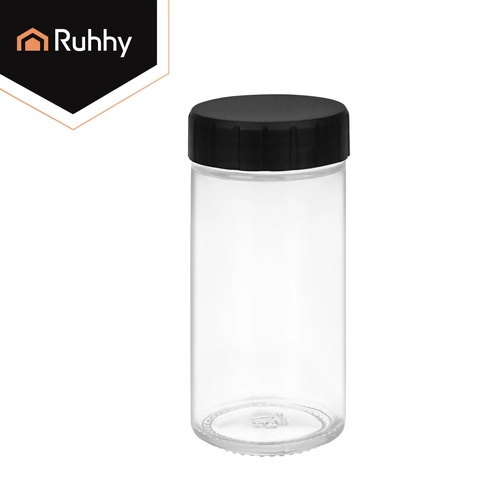 Každá dóza o objemu 90 ml chrání aroma a chuť. Čiré sklo pro snadnou kontrolu obsahu, černá víčka ladí s designem stojanu.
