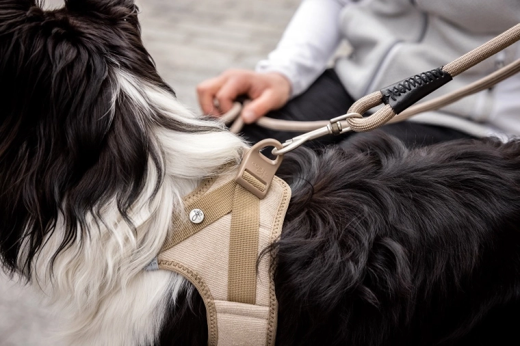 Stylový postroj s manšestrovou vrchní vrstvou a lehkou síťovinou Air‑Mesh zajišťuje pohodlné nošení během každodenních procházek. Díky chytré sponě připnete vodítko i postroj jedním pohybem a bez hlučného „cvakání“ klasických D‑kroužků. Konstrukce se zaměřuje na bezpečnost, ergonomii a volnost pohybu.