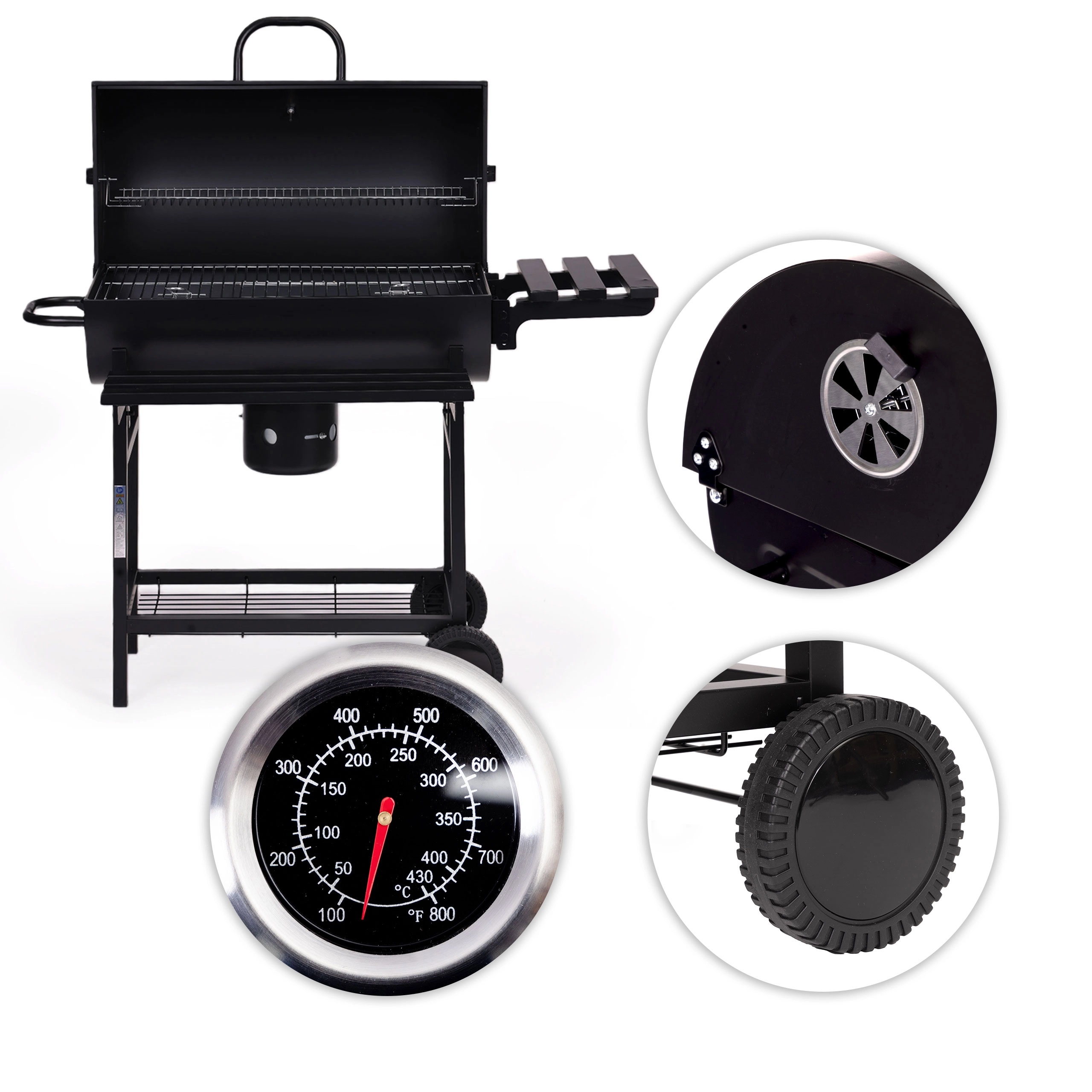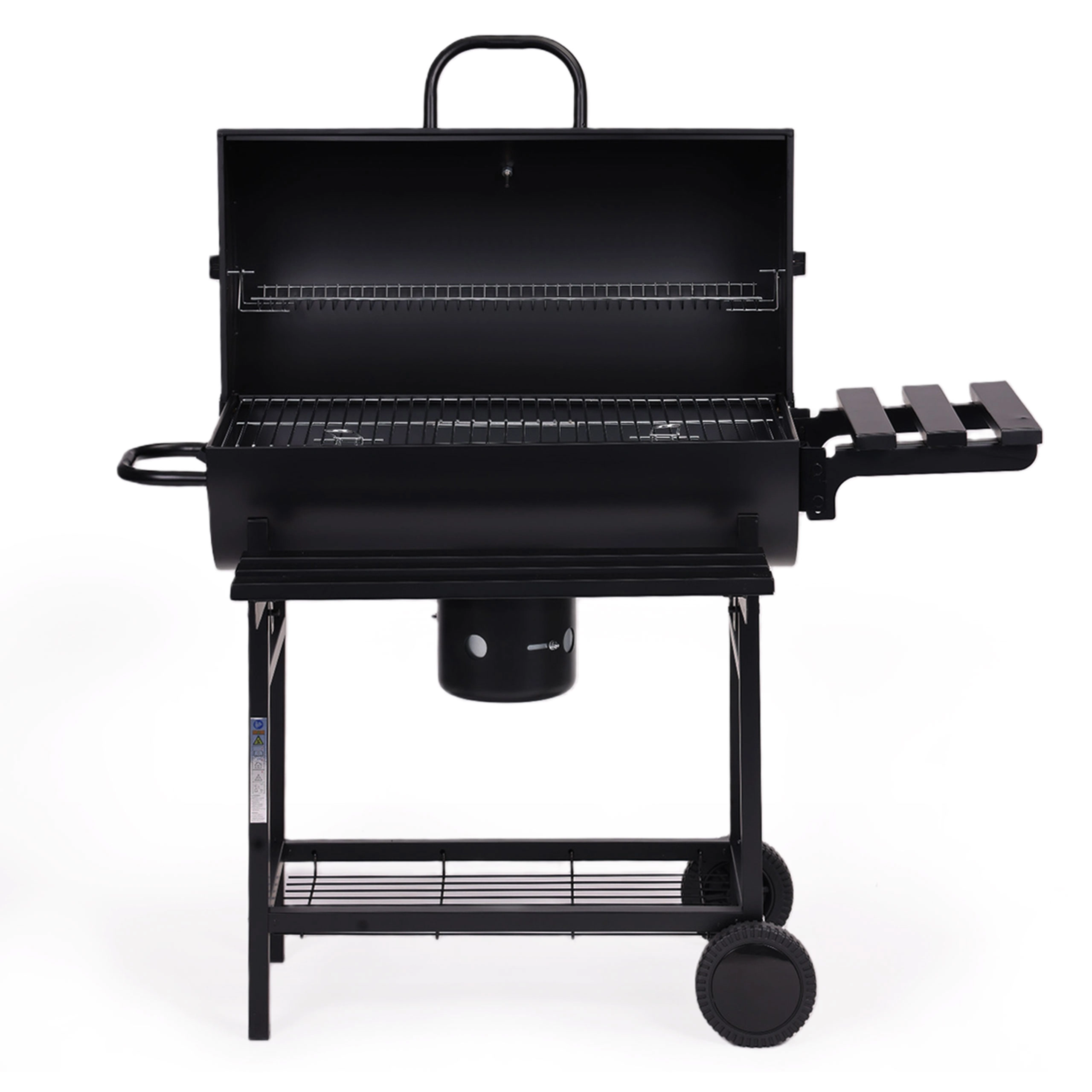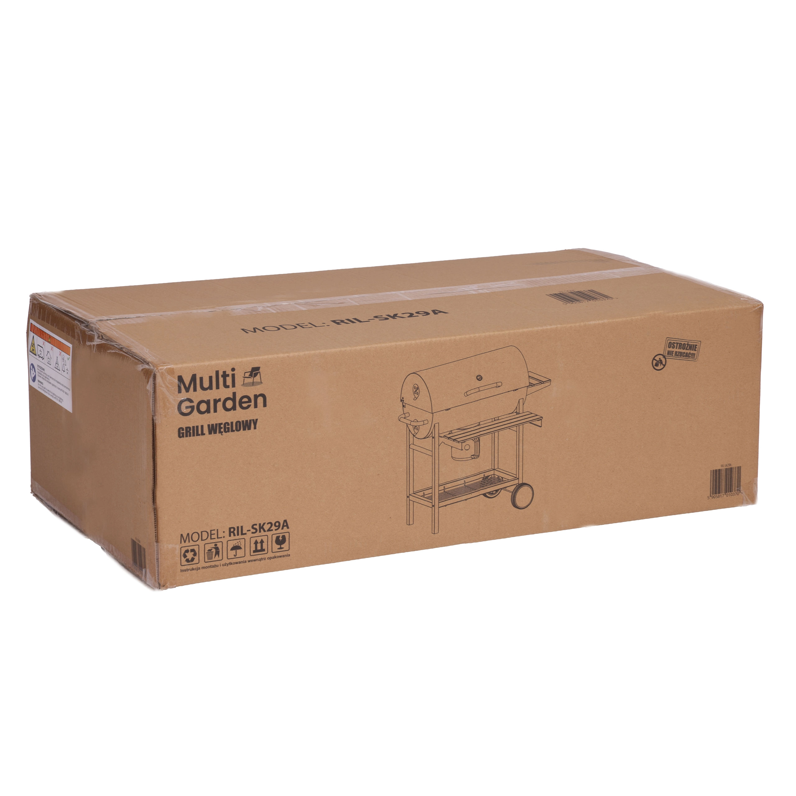 Užijte si pohodlné grilování venku s grilem na dřevěné uhlí MULTIGARDEN. Nabízí velkou grilovací plochu, integrovaný teploměr ve víku, účinný zachytávač popela a skládací police pro náčiní a suroviny. Díky ventilačním otvorům máte teplo pod kontrolou, transportní kolečka zajišťují snadné přesouvání a ohřívací rošt udrží pokrmy teplé bez připálení. Robustní konstrukce z oceli je odolná vůči vysokým teplotám i počasí.