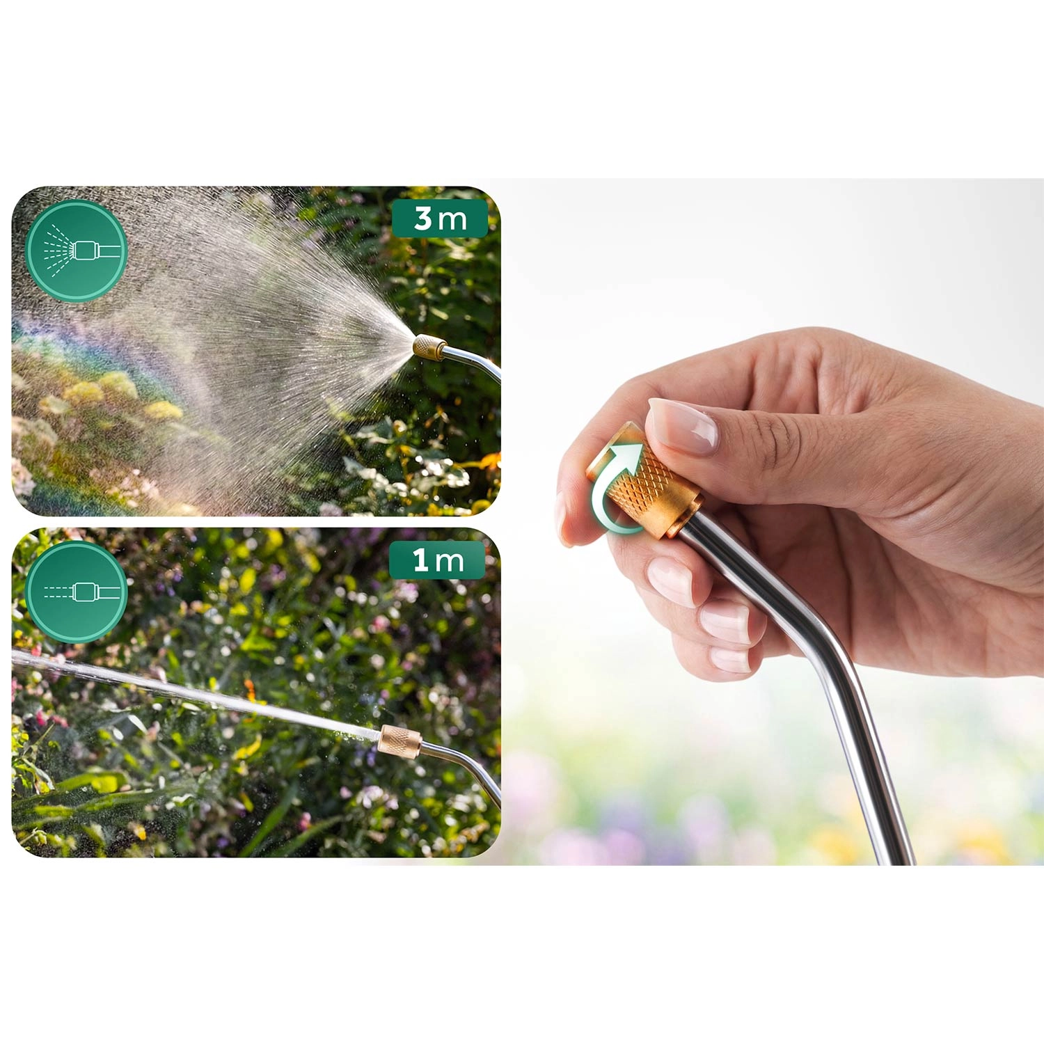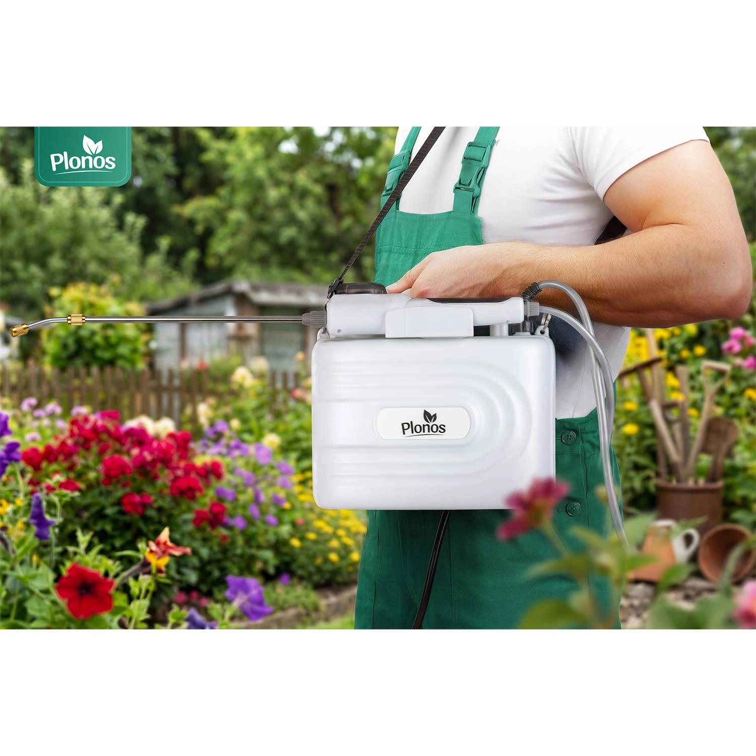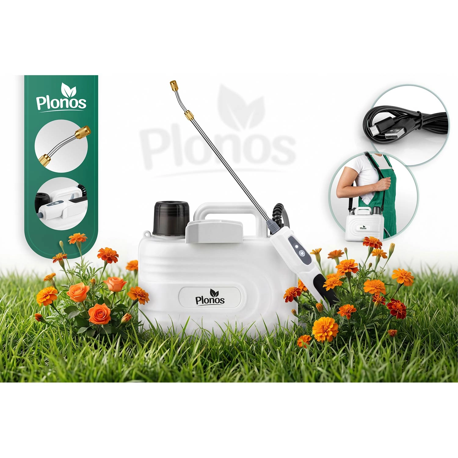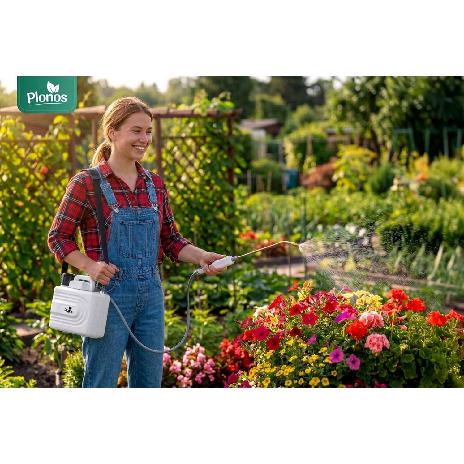 Postřikovač pro náročné zahrádkáře – akumulátorový tlakový postřikovač PLONOS 5 l spojuje mobilitu, sílu a přesnost. Jedním stiskem tlačítka spustíte plynulý postřik bez ručního pumpování, což šetří čas i námahu. Ocelová nerezová tyč a mosazná tryska umožňují plynulé nastavení od jemné mlhy po souvislý proud, takže snadno přizpůsobíte aplikaci hnojiv i prostředků proti škůdcům.