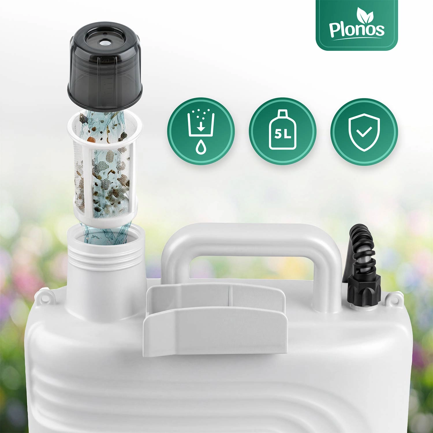 Výkonný akumulátorový postřikovač PLONOS o objemu 5 l zajistí rychlé a rovnoměrné ošetření rostlin bez pumpování. Díky regulovatelné mosazné trysce, stálému tlaku a pohodlným ramenním popruhům je práce v zahradě efektivní a komfortní. Od jemné mlhy po silný proud – přesně tak, jak zrovna potřebujete. Odolná nádrž z PE, 12V akumulátor s ukazatelem nabití a filtrační sítko pro ochranu proti ucpání zajistí dlouhou životnost a spolehlivý provoz.