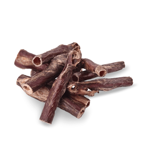 Přírodní pamlsek pro psy z 100% sušeného hovězího jícnu bez konzervantů, barviv a cukru. Podporuje žvýkání, čistí zuby a masíruje dásně, pomáhá předcházet zubnímu kameni a přispívá k správnému trávení.