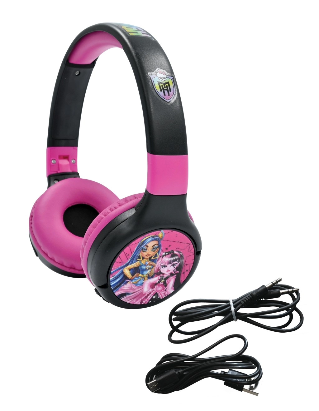 Udělejte dětem radost sluchátky Lexibook MONSTER HIGH, která spojují bezpečnost, komfort a zábavu. Díky bezdrátové technologii Bluetooth lze poslouchat hudbu bez kabelů, a když je potřeba, stačí připojit dodaný audio kabel. Skládací provedení usnadňuje nošení v batohu a výrazný růžovo-černý design s hrdinkami MONSTER HIGH přidává styl.