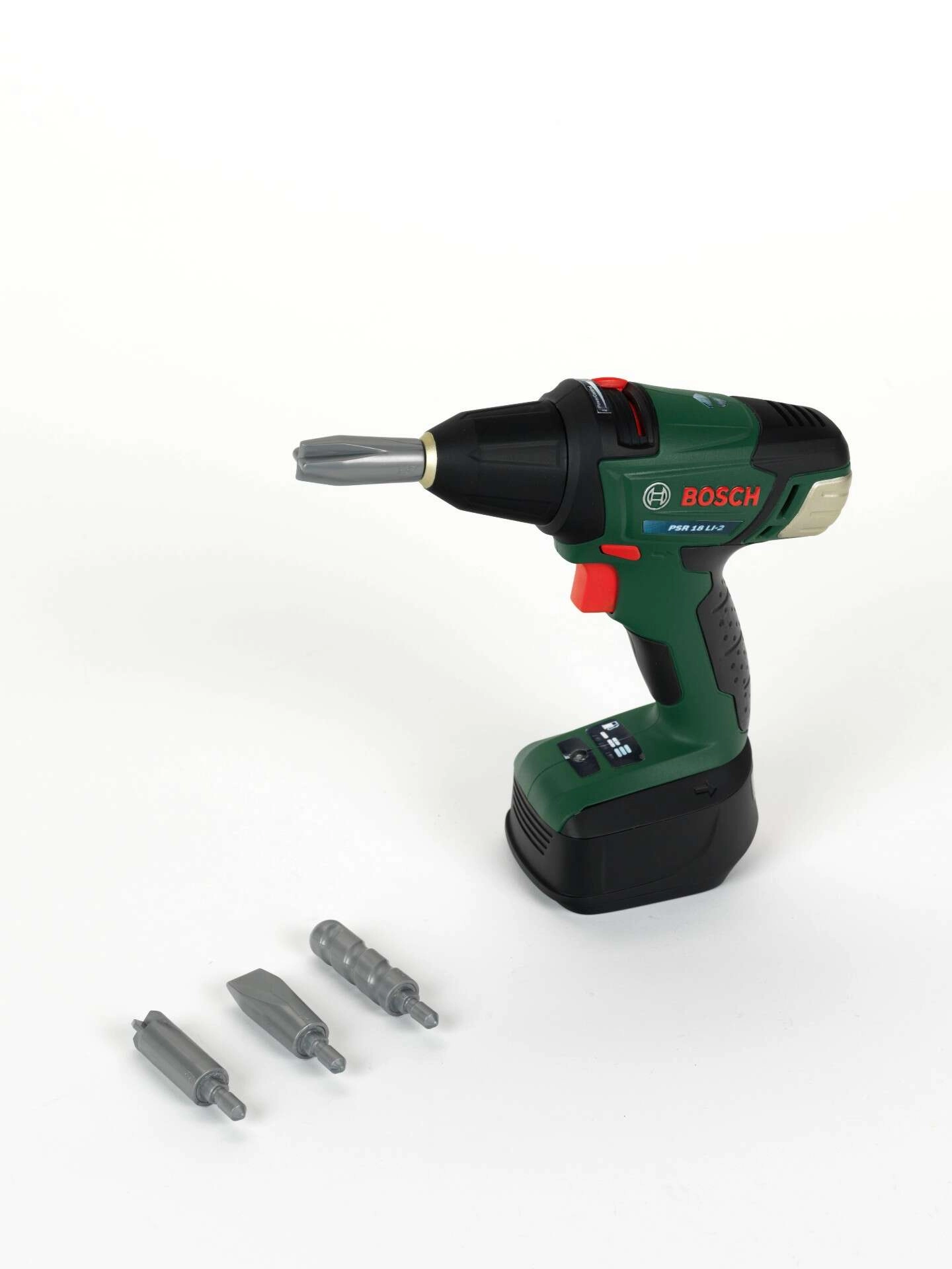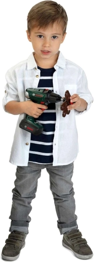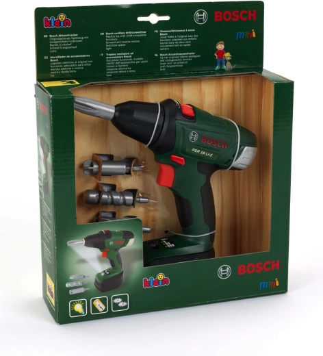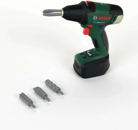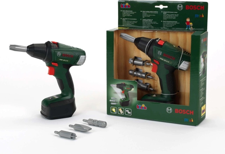 Realistická dětská aku vrtačka Bosch II od značky Klein nabízí bezpečné a zábavné napodobování práce dospělých. Má vyměnitelné bity, dvě rychlosti, pravý/levý chod a LED světlo u hrotu. Ergonomická rukojeť s měkčeným úchopem skvěle padne do dětské ruky.