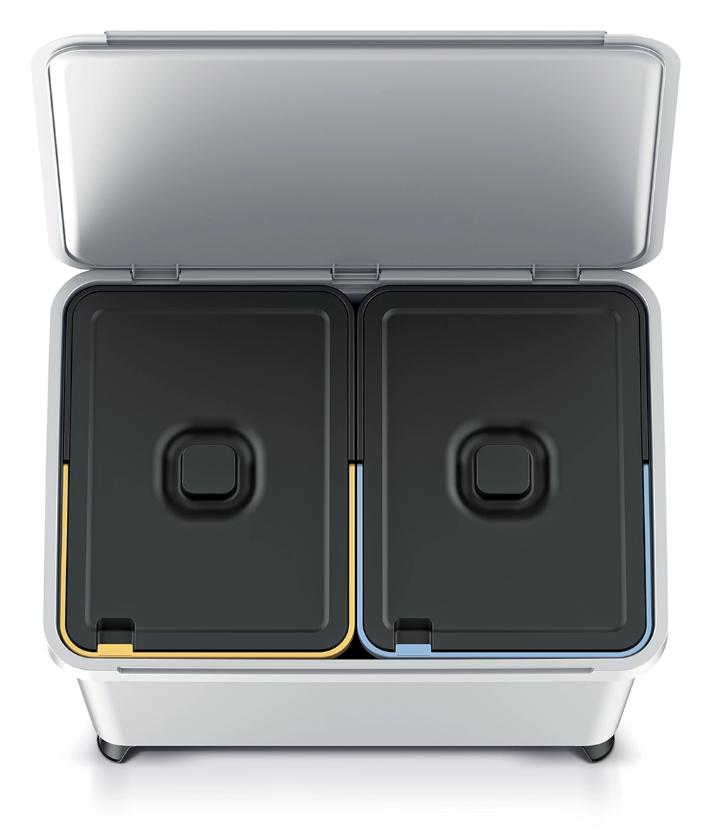 Dvojitý vnitřní systém s jasně označenými víky urychlí separaci odpadu a udrží pořádek bez námahy.