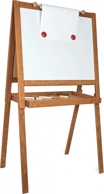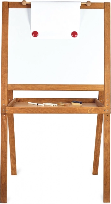 Oboustranná tabule Vilac je ideálním nástrojem pro rozvoj dětské kreativity a vzdělávání. Jedna strana nabízí černou plochu pro kreslení křídou, zatímco druhá je magnetická a vhodná pro fixy. Díky robustnímu dřevěnému rámu poskytuje stabilitu a bezpečnost při používání. Tabule má také nastavitelnou výšku, která se přizpůsobí potřebám vašich dětí až do 120 cm.
