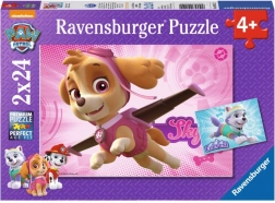 Objevte radost ze skládání s dětským puzzle Ravensburger 2×24 dílků s motivem Paw Patrol. Každý obrázek po složení vytváří živou a detailní scénu se Skye a Everest o rozměrech 27,5 × 19,2 cm. Díky preciznímu zpracování se dílky snadno spojují a drží pevně pohromadě.