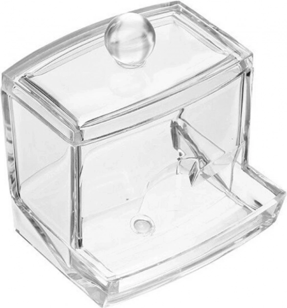 Udržte svou koupelnu přehlednou a hygienickou. Tento kompaktní dávkovač na vatové tyčinky je vyroben z kvalitního, netoxického akrylu PMMA, který je odolný proti poškrábání a snadno se čistí. Průhledné provedení umožní okamžitou kontrolu stavu zásoby.