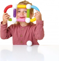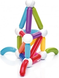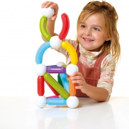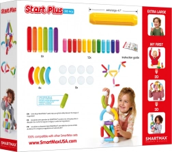 Magnetická stavebnice SmartMax Start Plus je ideální volbou pro malé objevitele. Sada obsahuje 30 dílů, včetně dlouhých tyček, středních tyček, zatáček a spojovacích koulí, které umožňují sestavování jednoduchých i složitých konstrukcí. Děti si mohou vyzkoušet různé 2D a 3D tvary a stavby jako věže či mosty.