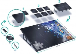 Tato nakloněná puzzle deska poskytuje pohodlný a efektivní povrch pro skládání, který zabraňuje sklouznutí nebo pohybu dílků mimo místo. S rozměry 72 x 51 cm nabízí dostatek prostoru i pro nejpropracovanější puzzle projekty.