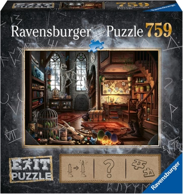 Připravte se na dobrodružství s Ravensburger Puzzle EXIT: Dračí Laboratoř, obsahující 759 dílků. Navržený pro hráče od 12 let, tento fascinující puzzle je ideální pro kluky i holky, které zaujme svět magie a tajemství.