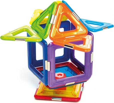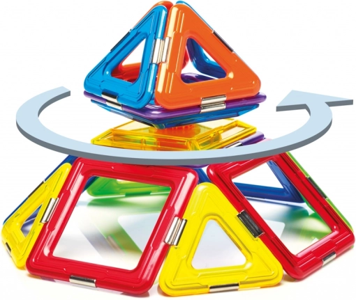 Stavebnice obsahuje celkem 6 magnetických čtverců, 8 trojúhelníků a 1 spinner, což poskytuje široký prostor pro experimentování. Tato stavebnice je nejen zábavná, ale také vzdělávací a rozvíjí dětské dovednosti jako prostorovou představivost, koordinaci, koncentraci a kreativitu.