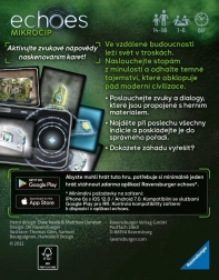 Ve hře Echoes: Mikročip se ocitnete ve zničeném světě vzdálené budoucnosti. Vaším úkolem je naslouchat ozvěnám minulosti a z útržků zvuků, dialogů a šumů poskládat příběh, který odhalí temné tajemství pádu moderní civilizace. Každá karta představuje předmět s ukrytou historií – stačí ji naskenovat v aplikaci a nechat se vést zvukovými indiciemi.