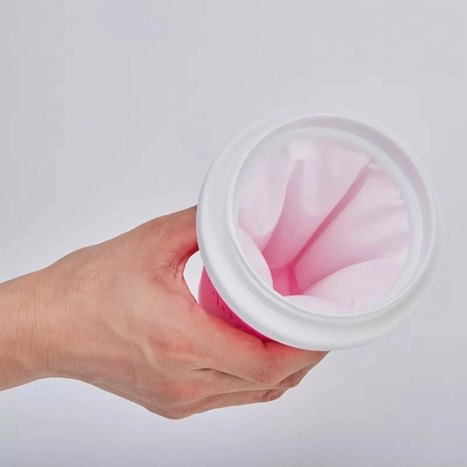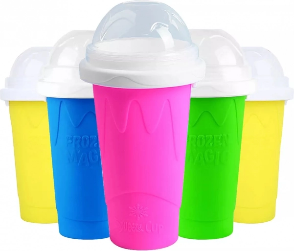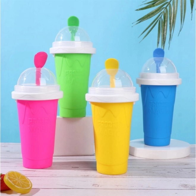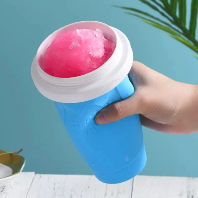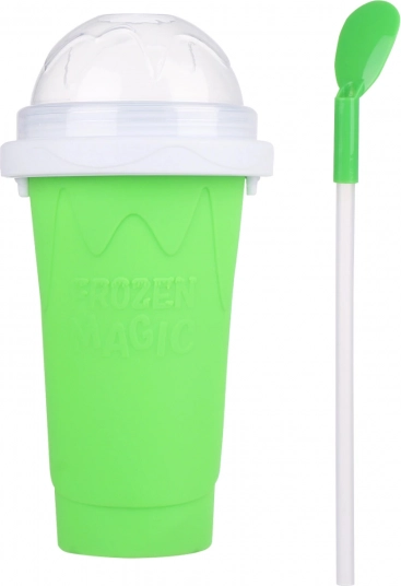 Kelímek na výrobu ledové tříště Frozen Magic promění džusy, limonády či mléčné koktejly ve slushy stiskem ruky. Integrované chladicí komory v silikonovém těle efektivně odebírají teplo a během chvilky vytvářejí jemně drcenou ledovou texturu.