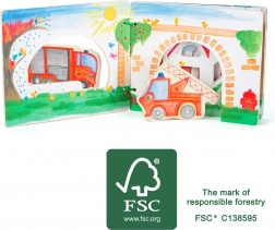S dřevěnou knížkou Hasiči se děti ponoří do akčního světa hasičů. Kniha je vybavena dřevěnými figurkami, které inspirují k vymýšlení vlastních příběhů. Po uhašení ohně si mohou děti vrátit figurky zpět do knihy, čímž se učí základům pořádku a zodpovědnosti.