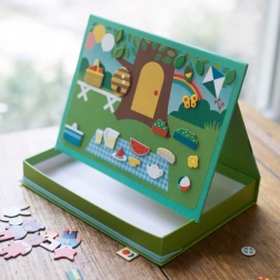 Vytvořte si vlastní příběhy se zábavným magnetickým setem, který nabízí dvě pozadí a více než 72 magnetických dílků. Přenosná krabice ve stylu stojanu s pevnou konstrukcí a elastickou gumičkou pro rychlý úklid zaručí snadné používání doma i na cestách. Hračka podporuje kreativitu, jemnou motoriku a otevřenou hru, je vyrobena z recyklovaných materiálů potištěných rostlinnými inkousty a splňuje všechny bezpečnostní normy.