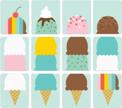 - 52 ilustrovaných karet, 4 zmrzlinová auta