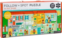 Tato kreativní sada PETIT COLLAGE spojuje puzzle a interaktivní bludiště do jedné hry, která děti zabaví i něco naučí. Po složení 10 velkých dílků vznikne dlouhý obrázek domu (53 × 21,5 cm), ve kterém děti prstem sledují vyznačenou trasu a zároveň objevují 20 ukrytých předmětů.