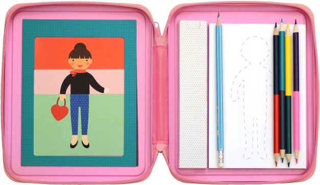 Petit Collage módní návrhářská sada podporuje dětskou kreativitu a fantazii. Je ideální na cesty nebo na doma.
