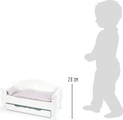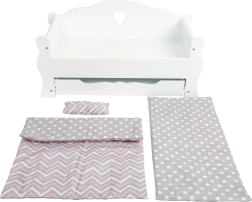 Tato elegantní postýlka pro panenky nebo plyšáky představuje kombinaci stylu a praktičnosti. Je vyrobena z kvalitního dřeva, které zajišťuje dlouhou životnost a stabilitu. Včetně matrace, peřinky a polštáře, poskytuje maximální pohodlí pro panenku o délce až 45 cm.