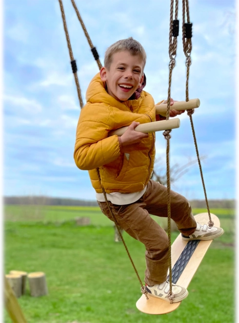 Tato netradiční houpačka kombinuje zábavu a rozvoj motoriky. Prkno z pevné překližky se zahnutými hranami a nastavitelná madla z masivního dřeva umožní dětem bezpečně trénovat rovnováhu, koordinaci a stabilitu. Díky protiskluzové ploše je houpání ve stoje jistější a pohodlnější.