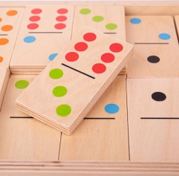 Jumbo dřevěné domino je perfektně dimenzováno pro malé děti, které si snadno poradí se zvedáním a umisťováním dílků. Hlavní přednosti této hry zahrnují: