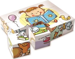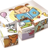 - Dřevěné obrázkové kostky / 3D skládačka a stavebnice