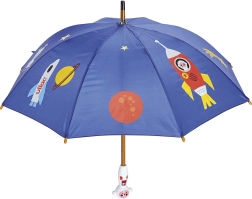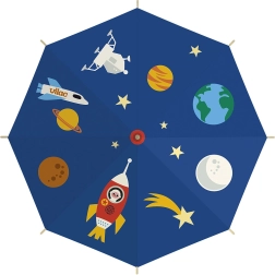 Objevte kouzlo deštivých dnů s dětským deštníkem VILAC Kosmonaut. Barevný vesmírný potisk s planetami a raketami promění cestu do školky či školy v zábavu, zatímco robustní konstrukce spolehlivě ochrání před deštěm. Ergonomická dřevěná rukojeť se dětem dobře drží a podporuje jistý úchop.