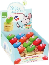 Tento roztomilý dřevěný box je ideálním místem pro uschování vypadnutých mléčných zoubků. Vyrobeno ve Francii z vysoce kvalitního materiálu a zdobené zelenou myškou s růžovými oušky.